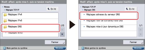 Il est possible de mémoriser automatiquement l'adresse IPv4, le nom d'hôte et le nom de domaine définis pour la machine sur le serveur DNS au moyen des mises à jour DNS dynamiques. Un serveur DNS dynamique est obligatoire pour utiliser les mises à jour DNS dynamiques.