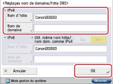 Si [BOOTP] ou [DHCP] est réglé sur "Oui" à l'étape 5, le nom d'hôte et le nom de domaine définis manuellement seront remplacés.