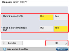 Si le protocole DHCP est utilisé sans la fonction de mise à jour dynamique DNS, il est conseillé de toujours attribuer la même adresse IP à la machine. (Si l'adresse IP change, le nom d'hôte de ce produit ne correspondra plus à l'adresse).