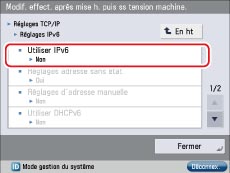 Si l'option <Utiliser DHCPv6> est réglée sur "Oui" à l'étape 7, l'adresse IPv6 d'un serveur DNS qui a été spécifiée manuellement sera remplacée.