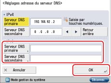 Aucun des types d'adresse suivants ne peut être défini pour [Serveur DNS primaire] ou [Serveur DNS secondaire] :