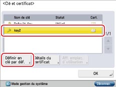 Sélectionner la paire de clés à utiliser pour les communications cryptées SSL → appuyer sur [Définir en clé par déf.].