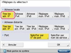 Appuyer sur [Ttes les adr. IP] pour <Adresse distante>.