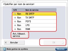 Sélectionner un nom de service affiché → appuyer sur [Act./désact. service] → appuyer sur [OK].