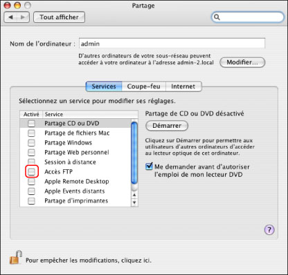 Il est conseillé de contacter l'administrateur du réseau utilisé lors de la configuration du serveur FTP.