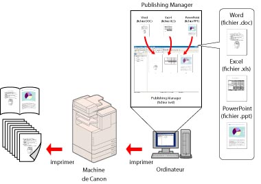 Publishing Manager permet de créer des documents de façon efficace, en tirant pleinement parti des fonctions d'une machine Canon.