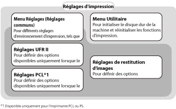 Menus des réglages UFR II/PCL