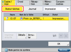 Appuyer sur [Copie/Impression] → [Statut tâches].