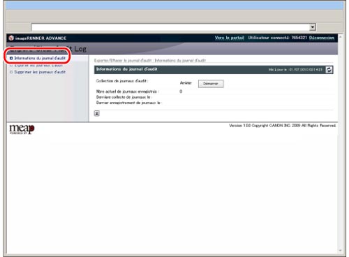 Si la collecte des journaux est lancée ou arrêtée, ce réglage est conservé jusqu'à ce qu'il soit modifié. Il est également conservé lorsque la machine est redémarrée.