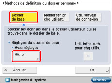 On peut utiliser des dossiers personnels sans spécifier les informations d'authentification pour chaque utilisateur si les conditions ci-dessous sont remplies. Dans ce cas, désélectionner [Util. infos auth. pour chq utilis.].