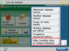 dans l'écran Fonctions de base [Lire et envoyer] et l'écran Envoi [Boîte Fax/I-Fax]. |