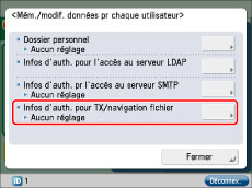 Utilise les informations d'authentification utilisées pour la connexion à la machine. D'autres réglages ne sont pas requis pour chaque utilisateur.