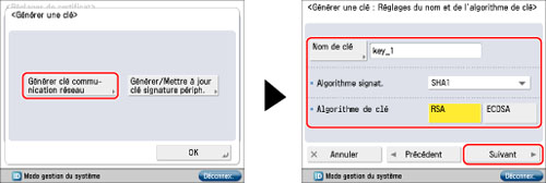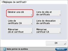Après avoir appuyé sur [Générer clé], il est impossible d'utiliser les clés tant qu'aucune biclé n'a été générée et enregistrée.