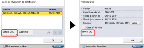 Pour plus d'informations sur l'installation d'une liste de révocation de certificats, voir "Installation d'un fichier de certificat".