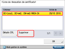Il est possible de mémoriser jusqu'à 50 listes de révocation de certificats.