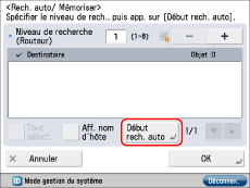 Si l'une des conditions suivantes est vraie pour la machine de destination, le message <Impossible d'obtenir les informations de périphérique. Mémoriser le périphérique comme destinataire ?> s'affiche. Si l'on appuie sur [Oui], <Régl pouvant être distrib> est vide dans l'écran de détails.