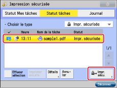 Si certaines tâches sont en cours d'impression ou en attente d'impression, les documents sécurisés/cryptés sont imprimés une fois les tâches en cours terminées.