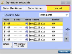 Appuyer sur [Impression avec priorité] pour imprimer en priorité la tâche sélectionnée une fois la tâche en cours terminée. |