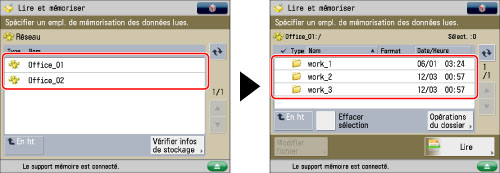 Pour utiliser l'espace de stockage réseau, il est nécessaire d'effectuer des réglages préalables en fonction des besoins. Pour plus d'informations, voir "Réglages réseau".