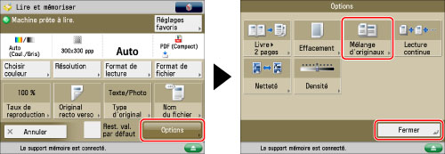 La sélection du mode Mélange d'originaux peut avoir pour effet de ralentir la lecture.