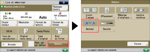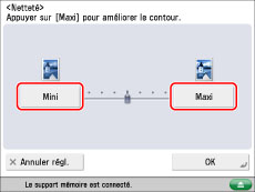 Le réglage de [Netteté] est invalide lorsque toutes les conditions ci-dessous sont réunies. L'image affichée avec [Afficher image] reflète le réglage, mais pas pour la véritable image lue.
