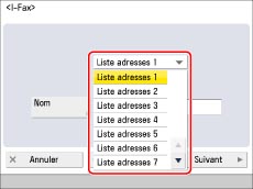 Dans le cas où l'on n'envoie pas les documents via un serveur et que l'adresse IP du destinataire n'est pas enregistrée au niveau d'un serveur DNS, il faut utiliser le format suivant pour saisir le nom de domaine : (utilisateur) @ [adresse IP du destinataire]. Saisir la chaîne voulue dans "(utilisateur)."