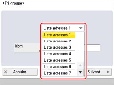 Dérouler la liste → sélectionner une liste d'adresses dans l'une des listes d'adresses 1 à 10.