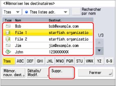 Sélectionner le destinataire à supprimer → appuyer sur [Suppr.].