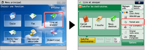 Appuyer sur [Lire et envoyer] → appuyer sur la touche de sélection du format de lecture.