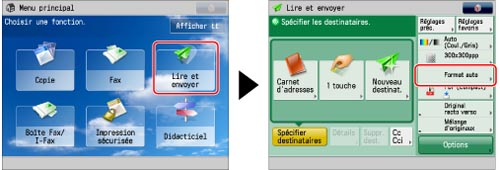 Appuyer sur [Lire et envoyer] → spécifier le destinataire → appuyer sur la touche de sélection du format de lecture.