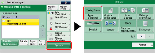 Spécifier le destinataire → appuyer sur [Options] → [Type d'original].