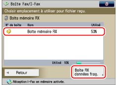 Il est conseillé de supprimer les fichiers et les données d'image inutiles de la boîte Fax/I-Fax afin de libérer de la place pour le stockage de nouveaux fichiers.