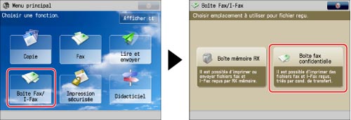 Appuyer sur [Boîte Fax/I-Fax] → [Boîte fax confidentielle].