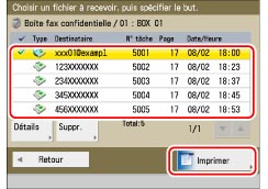 Impression d'un fichier stocké dans une Boîte fax confidentielle