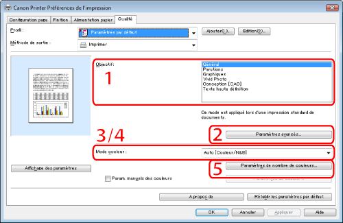 Les éléments qui s'affichent dans l'écran du pilote d'imprimante et les fonctions disponibles varient en fonction du modèle d'imprimante utilisé.