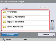 → [Réglages de gestion] → [Licence/Autre] → régler [Interf. util. dist.] sur "Oui".|
