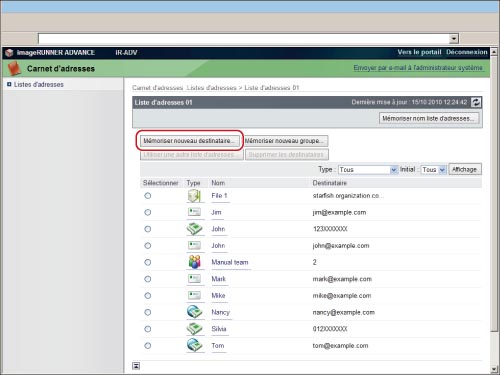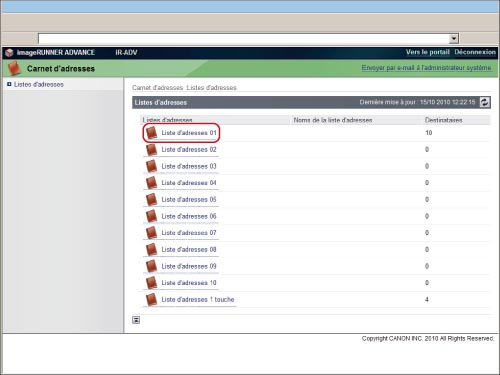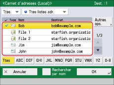 Cliquer sur [Carnet d'adresses] → [Liste d'adresses 01] à l'écran Liste d'adresses.