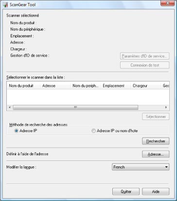 Si un scanner est déjà sélectionné, passer à l'étape 6 de la section "Réglages du scanner réseau".