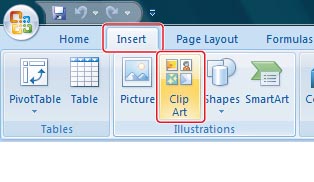 Cliquer sur [Clip Art] dans le menu [Insert].