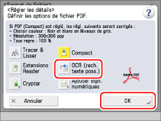 Définition des réglages OCR (recherche texte possible)