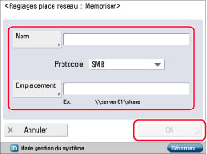 Utilisation d'un espace avancé du réseau (Réglages de l'administrateur de la machine à ouvrir)