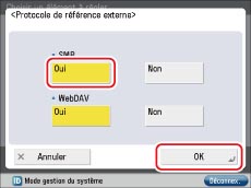 (2) Régler [WebDAV] sur [Oui] → appuyer sur [OK].