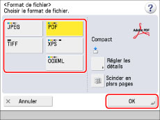 Sélectionner le format de fichier souhaité → appuyer sur [OK].