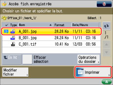 Sélectionner le fichier à imprimer → appuyer sur [Imprimer].