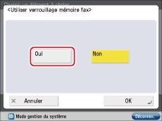 Cliquer sur [Réglages verrouillage mémoire] → sélectionner [Utiliser verrouillage mémoire fax].