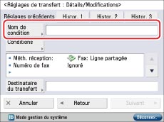 Sélectionner la condition de transfert mémorisée → appuyer sur [Valider/Invalider].
