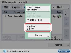Suivre les procédures ci-après pour imprimer la liste des réglages de transfert.