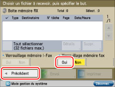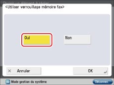 Appuyer sur [Oui] pour <Verrouillage mémoire fax> → [Précedent].