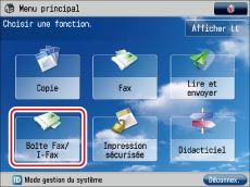 Sélectionner [Boîte Fax/I-Fax] dans l'écran du menu principal.