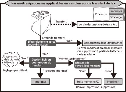 Lorsqu'une erreur de transfert est détectée, la machine traite la télécopie comme indiqué ci-dessous.